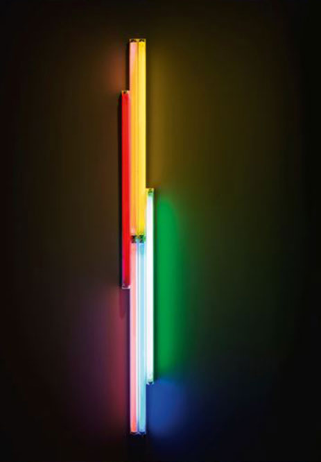 Minimalist wall art that provides a luminescent accent to give any space a new form. Dan Flavin’s untitled neon letter seems to pulse through the eyes in complete darkness, and in dim light the effect is ethereal. The oil on Masonite boxes in the fluorescent lights, an industrial night light for the urban dark: a place where the unpredictable becomes common.